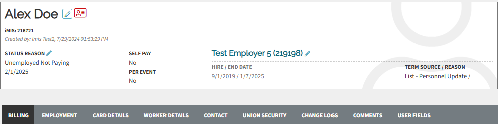 When a worker has no current employment, their Last Employment will now display with a strikethrough instead of a Blank Area to allow easier access to their last employment information and reducing the need for extra clicks.
