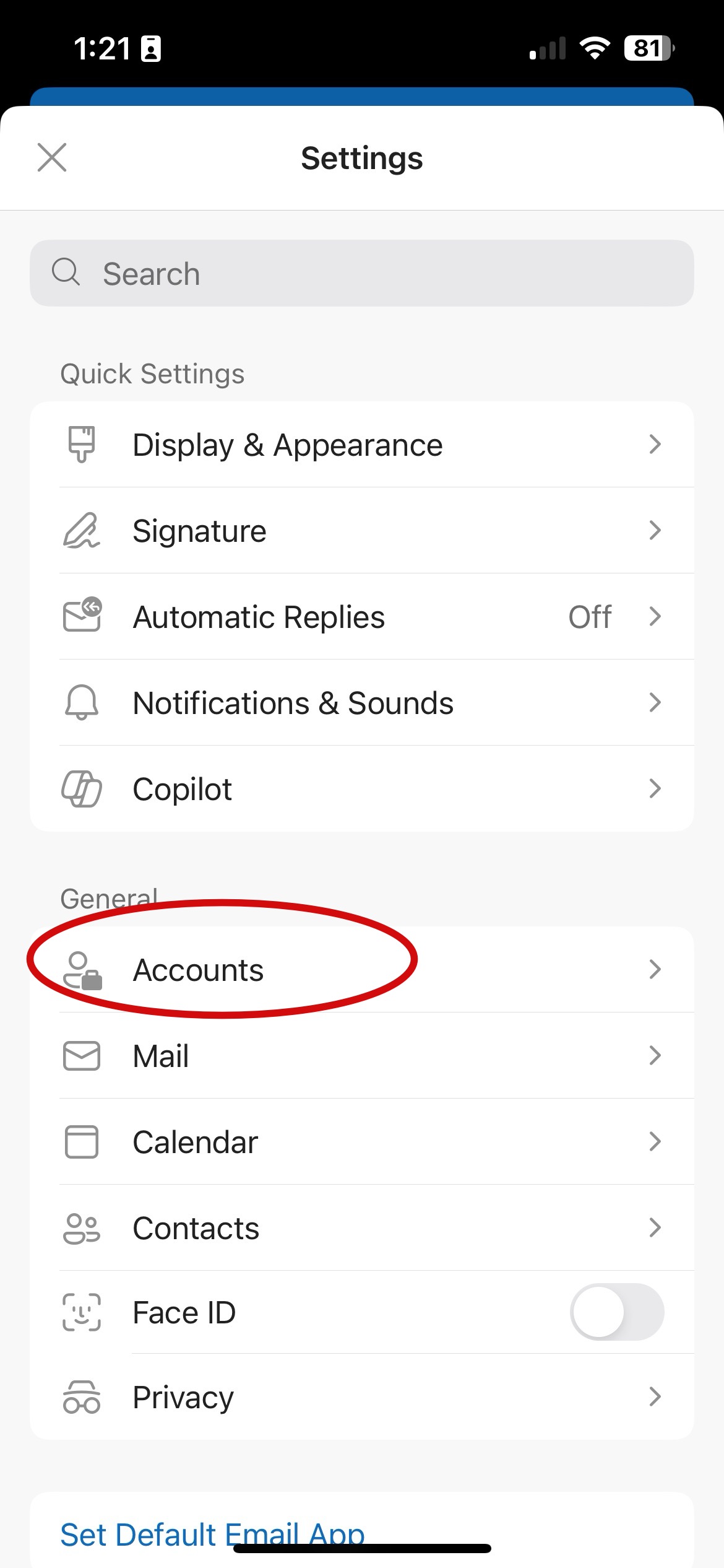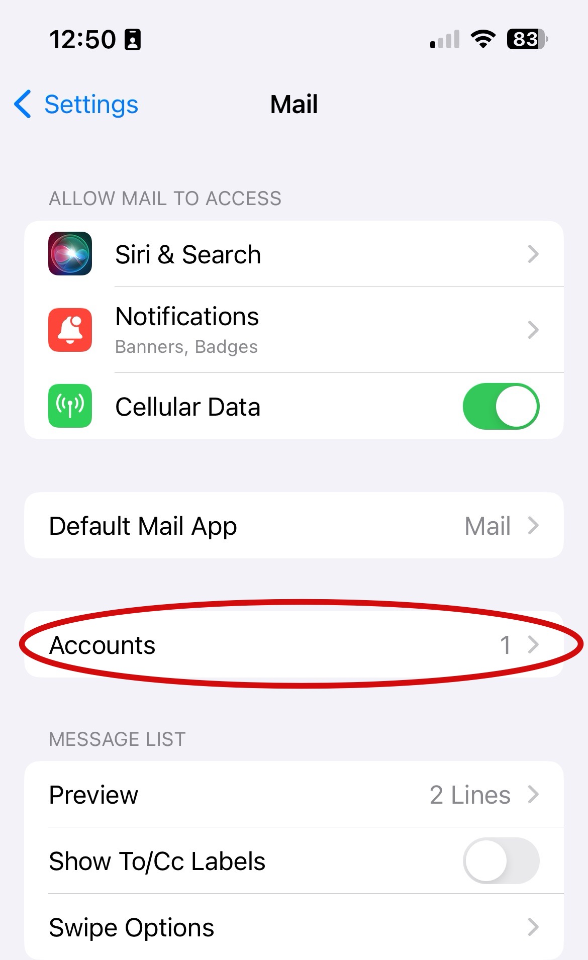 Step 2: Choose Accounts from the list of settings.
