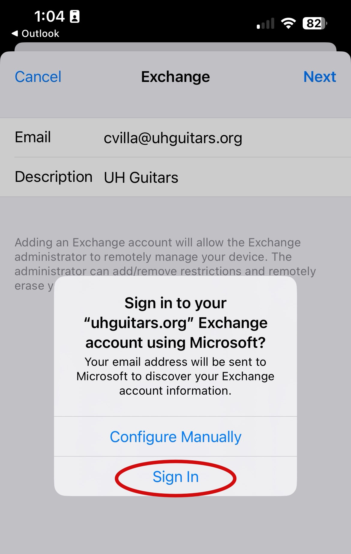 Step 5: Enter the email address and description of the account, such as UNITE HERE. Then press Next.