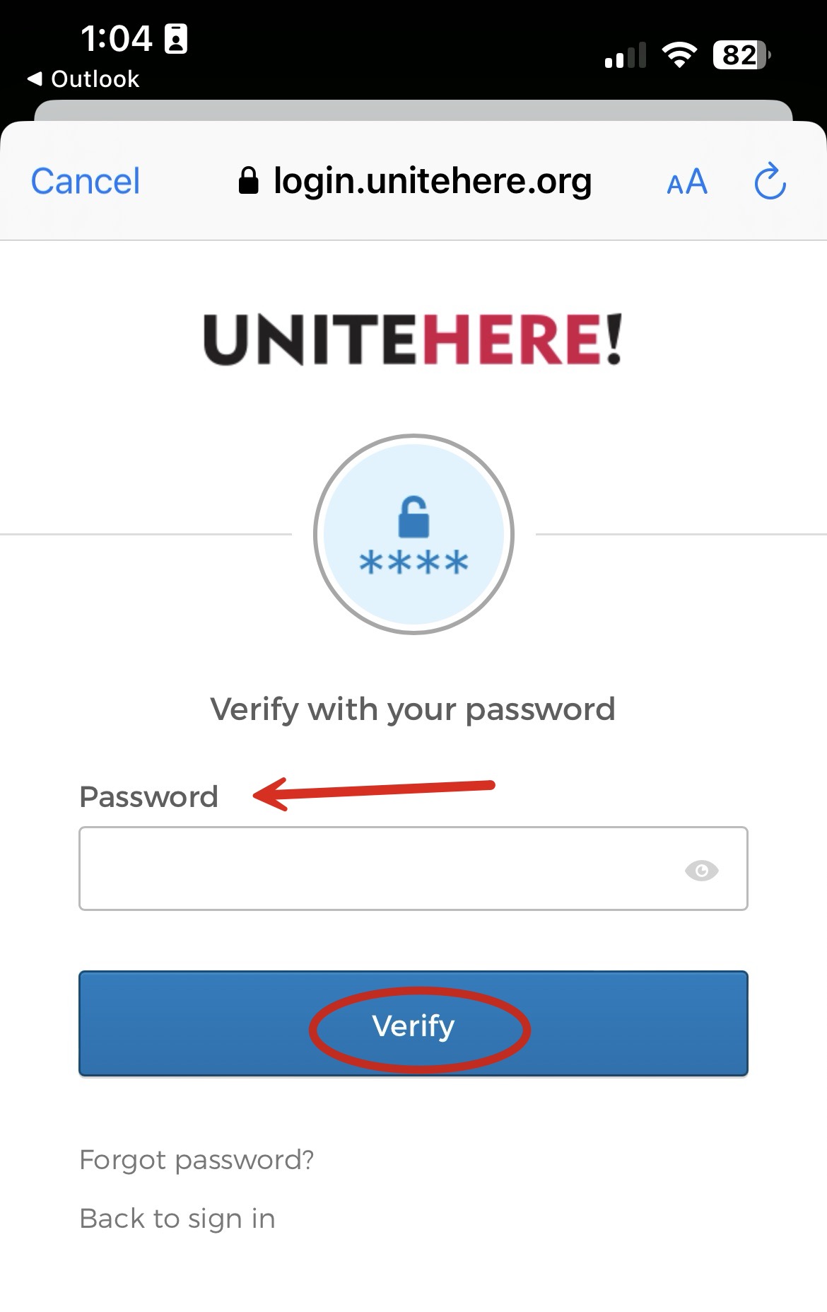 Step 4: Enter the Okta password for the email account and click Verify.