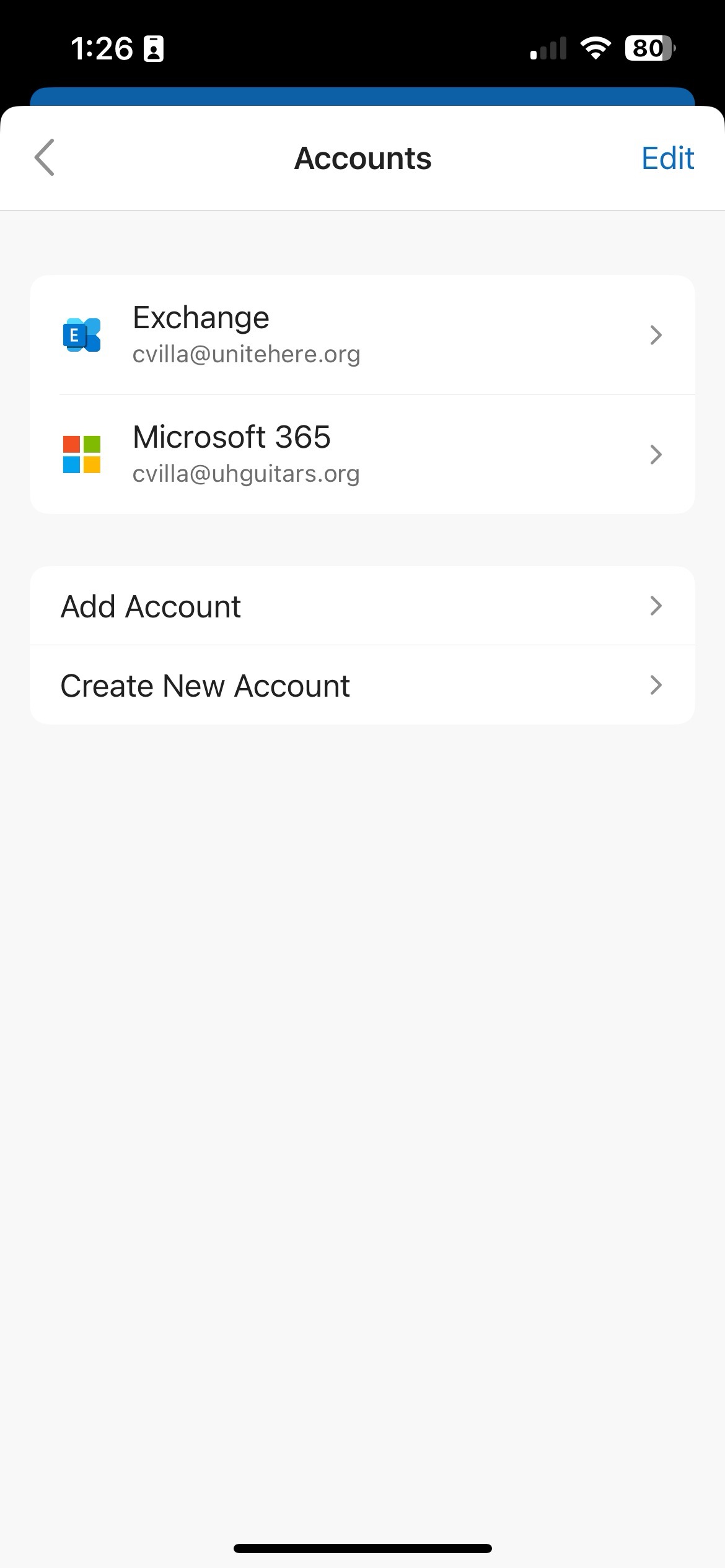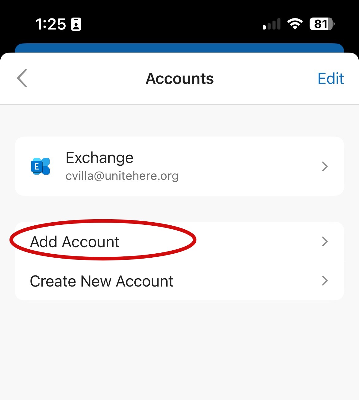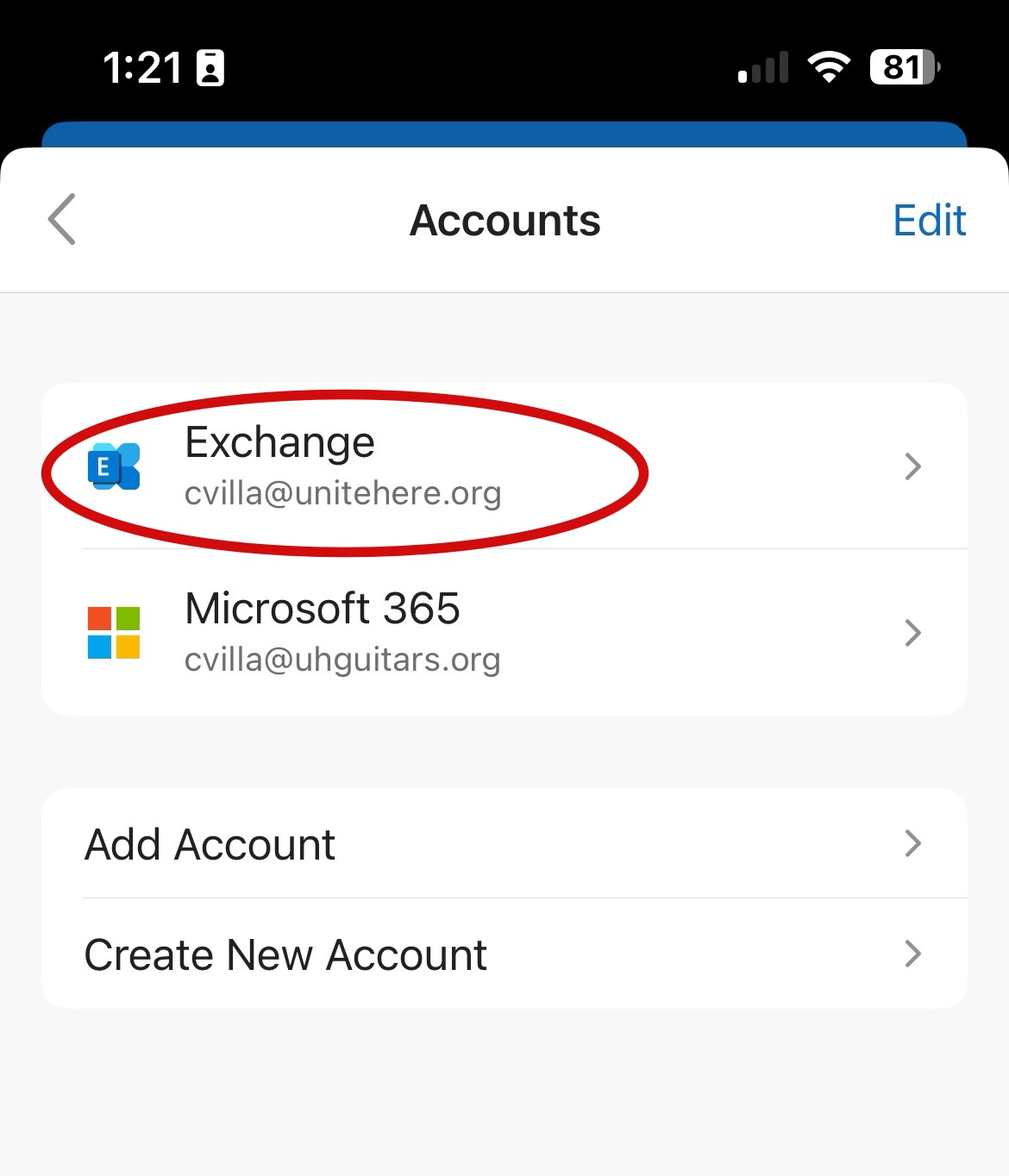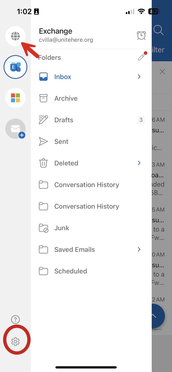 Step 2: Click on Accounts. Then, choose the UNITE HERE email account.