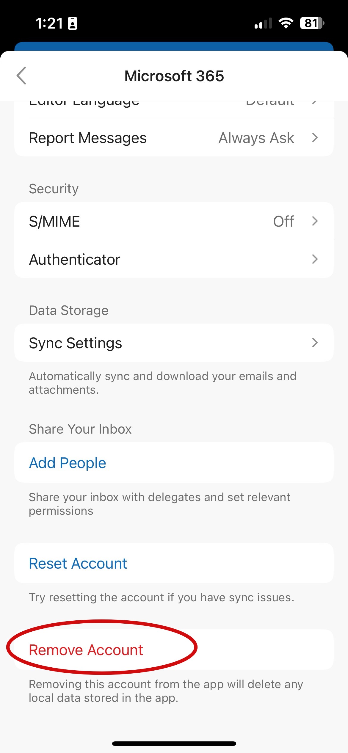 Delete Previous Email Account