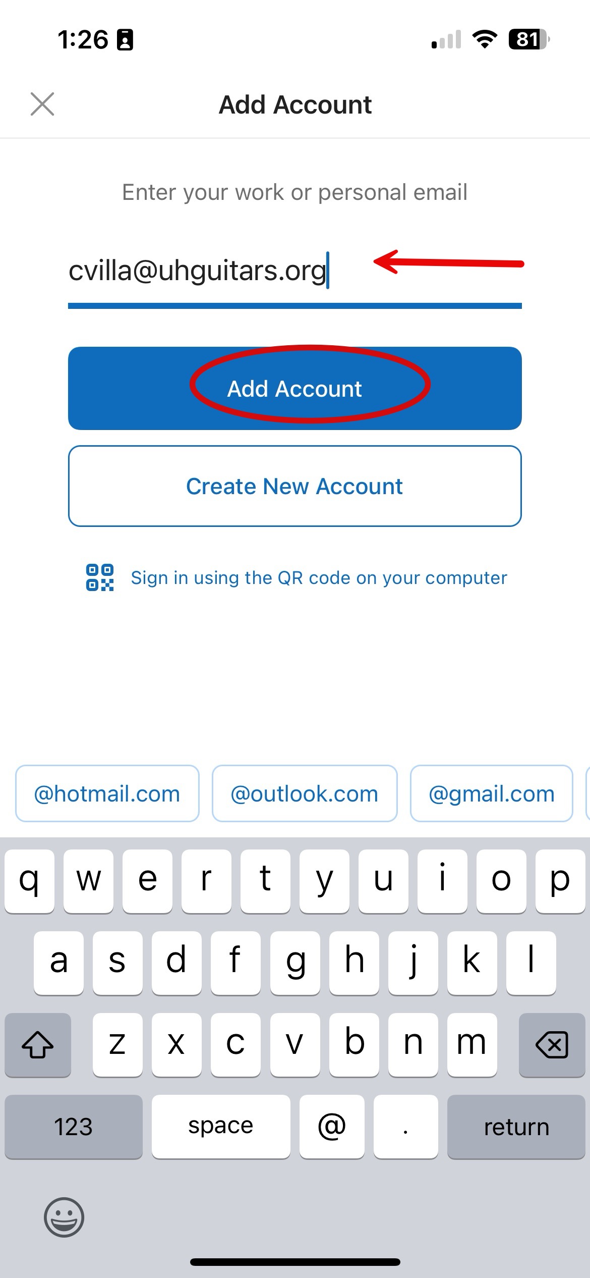 *A signing in page will display followed by the list of active emails in the app. This means your email address has been added.