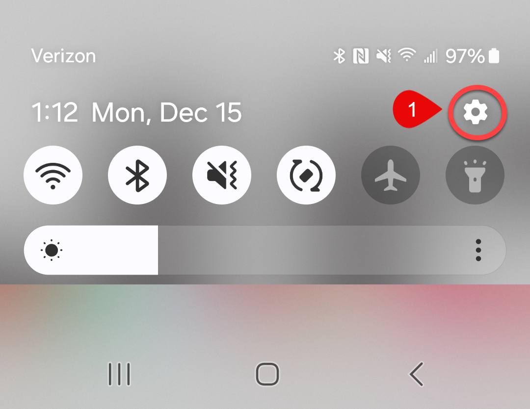 Step 1: Swipe down from the top center of the home screen and tap on the Settings Gear Wheel.