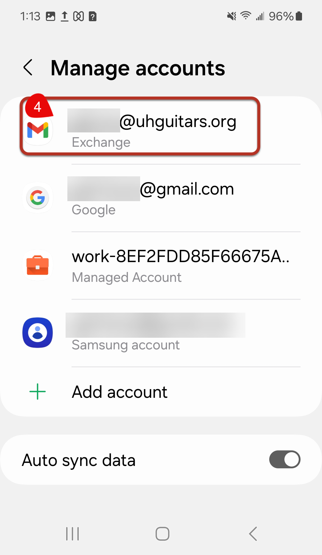 To set up a UNITE HERE email account on an Android, users will first need to delete any UNITE HERE accounts previously created on the phone.