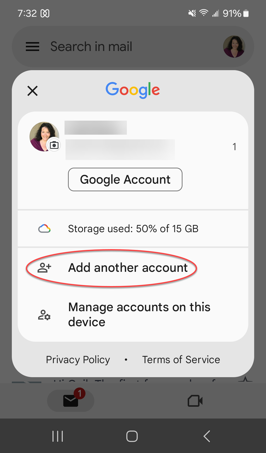 Step 1: Open the Gmail app and tap on the photo or icon in the upper right corner to access accounts. Then tap Add another account.