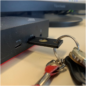 Step 1: Plug the YubiKey into a USB Port on your computer, the Y should light up yellow.
