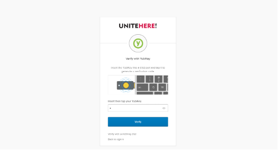 This article explains how to use a YubiKey as a second factor verification with Okta. To use Okta verify instead, please see this article. Contact support@unitehere.org for further questions or concerns.