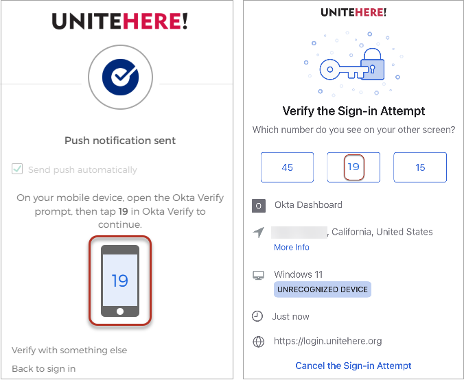 Step 5: From your Okta Verify app, tap the number on the screen that matches the number on the computer screen.